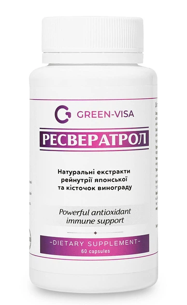 Ресвератрол 60капс. пригнічує процеси окислення і нейтралізує дію вільних радикалів, Грін-Віза.