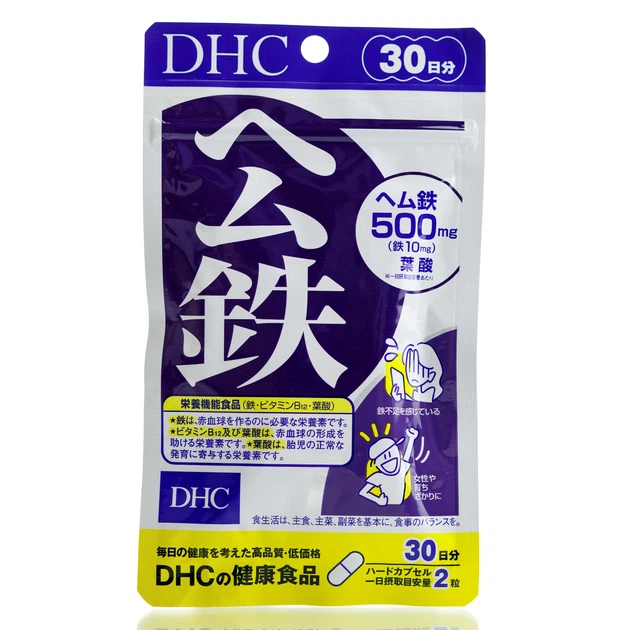 Гемове залізо, фолієва кислота, Вітамін В12 DHC Heme Iron 60 капсул - 30 днів
