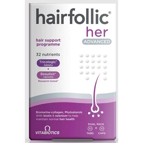 Дієтична добавка Vitabiotics Hairfollic Her Advanced (Хеафолік для жінок Покращений) 60 таблеток