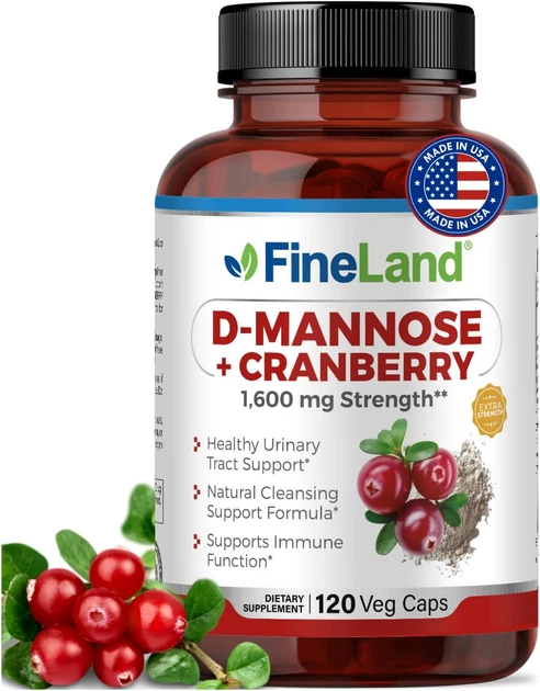Добавка преміум-класу підтримка сечовивідних шляхів FineLand D-Mannose + Cranberry 1600mg 120 капсул