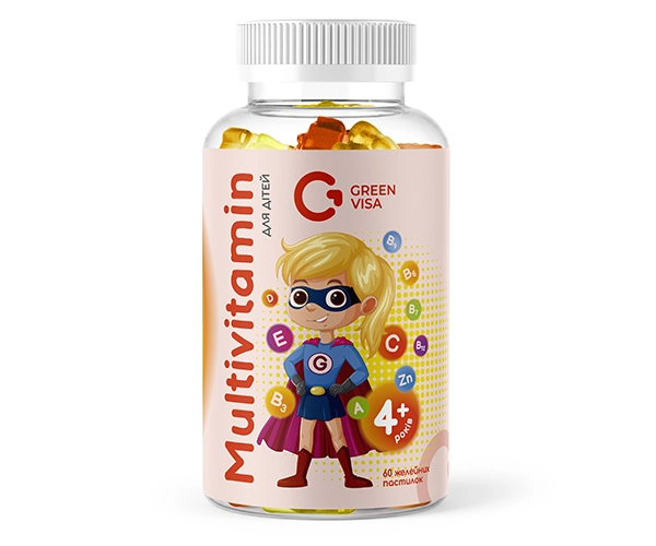 Дитячі мультивітамінні желейки Грін Віза Multivitamin з цинком, Грін-віза, 60 капсул