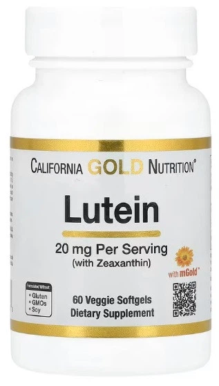 Лютеїн/Lutein із зеаксантином з екстракту чорнобривців, 20 мг, 60 рослинних капсул California Gold Nutrition