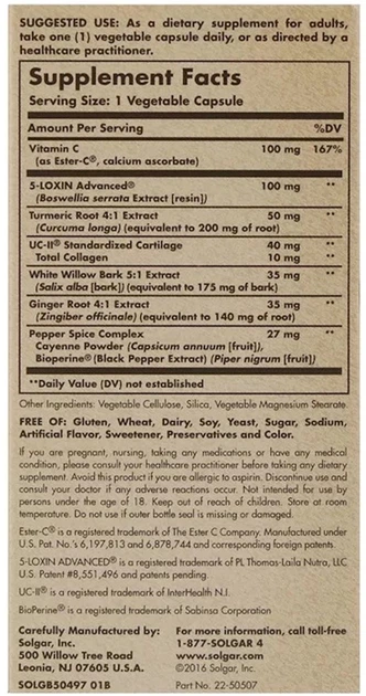 Комплекс Комфорт і Підтримка Суглобів Solgar No.7 Joint Support 60 капсул (033984505001)