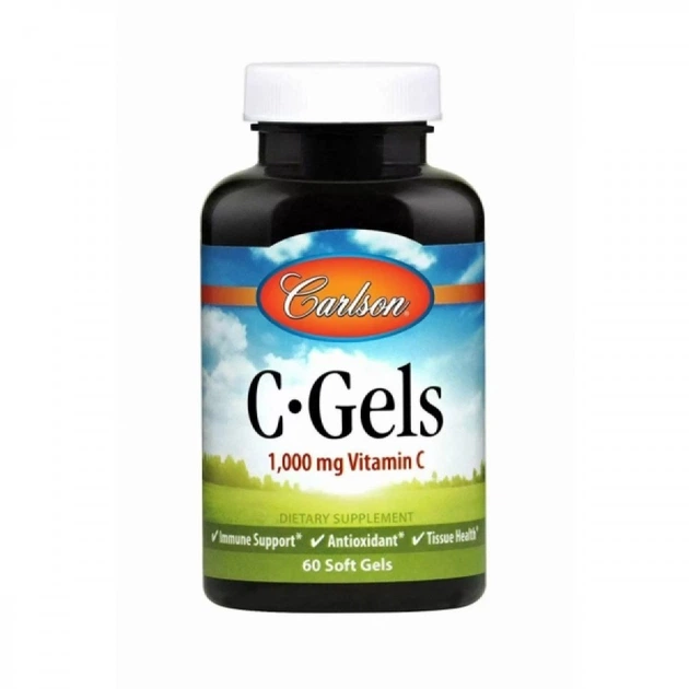 Вітамін C, C-Gel, Carlson Labs, 1000 мг, 60 гелевих капсул (CAR-03000)