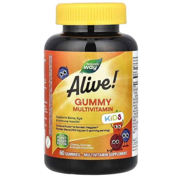 Мультивітаміни для дітей, вишня, апельсин і виноград, Alive! 60 жувальних таблеток