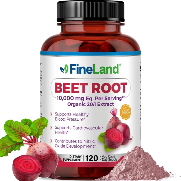 Добавка преміум-класу підтримка артеріального тиску FineLand Beet Root 10,000mg 120 капсул