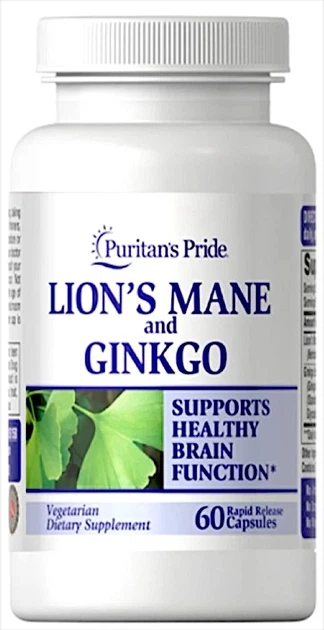 Їжовік гребінчастий (Гриб Левова грива) з Гінкго білоба Puritans Pride Lions Mane and Ginkgo 60 капс