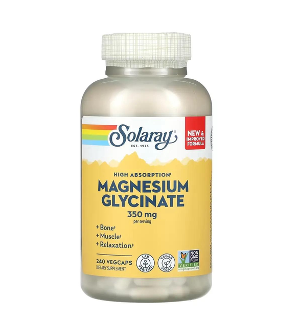 Гліцинат магнію, 350 мг, Solaray, 240 капсул, Magnesium Glycinate 240 vcaps (SOR-89504)