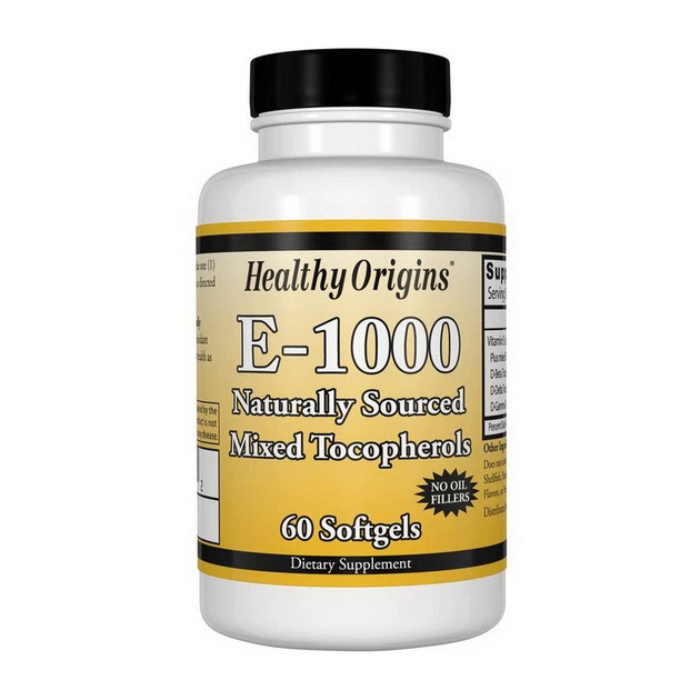 Вітамін Е Healthy Origins Vitamin E 1000 IU, 60 капсул для підтримки шкіри, волосся та нігтів