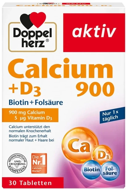 Вітаміни та мінерали Doppelherz Aktiv Кальцій 900 + Вітамін D3 + Біотин + Фолієва кислота
