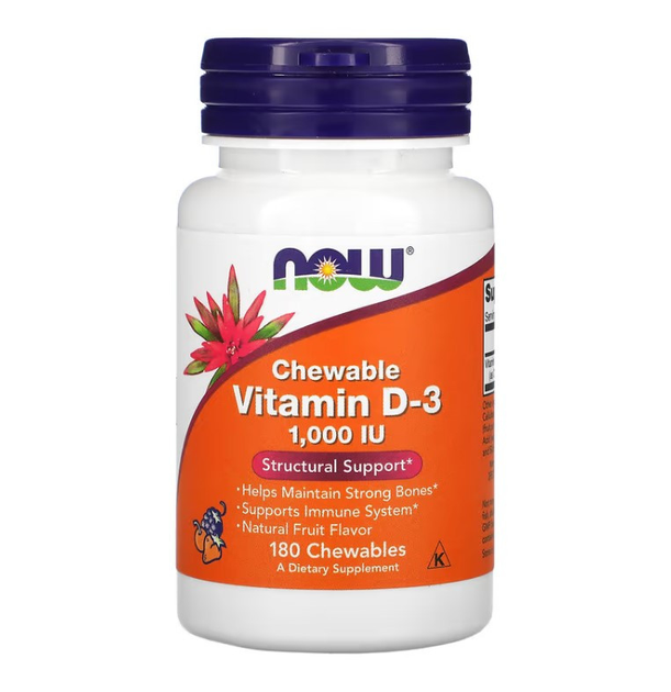 Вітамін D3 жувальний 25 мкг (1000 МО) з фруктовим смаком NOW Foods 180 жувальних таблеток