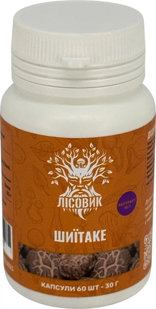 Натуральна добавка Лісовик Шиїтаке, екстракт 10:1, капсули 60 шт по 0.5 г (LIS-481454)