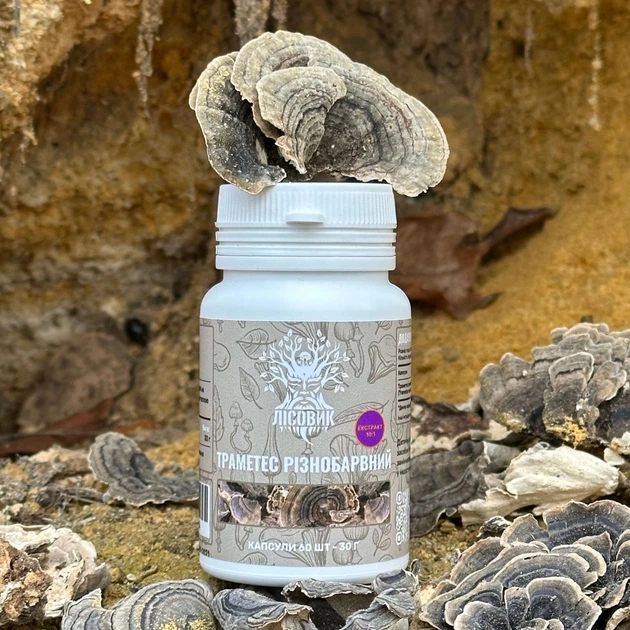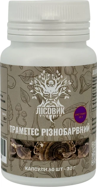 Натуральна добавка Лісовик Гриб Траметес різнобарвний, екстракт 10:1, капсули 60 шт по 0.5 г (LIS-481501)