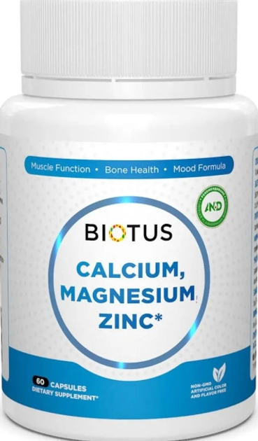 Кальций магний цинк витамин D3 Biotus Calcium Magnesium Zinc 60 капсул в упаковці (ARE-575036)