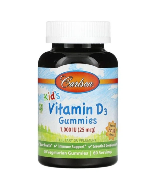 Жувальні таблетки для дітей з вітаміном D3 Carlson, смак фруктів, 25 мкг (1000 МО), 60 шт.