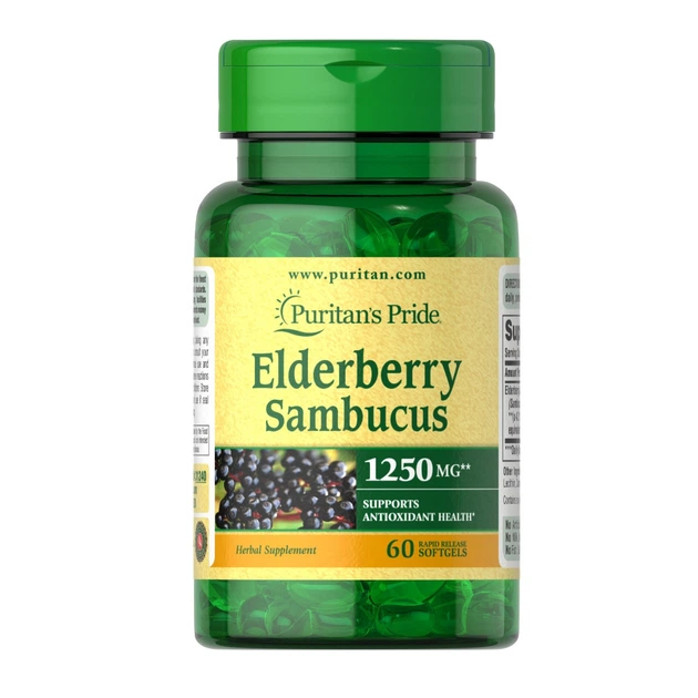 Натуральна добавка Elderberry Sambucus 1250 mg, 60 капсул Puritan's Pride 000287897