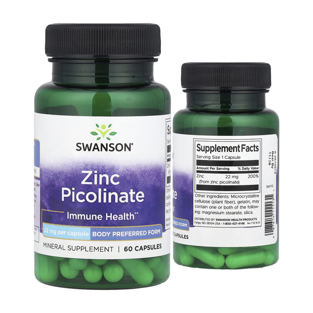 Swanson піколінат цинку 22 мг 60 капсул зміцнення імунітету харчова домішка хелатна форма цинк антиоксидант