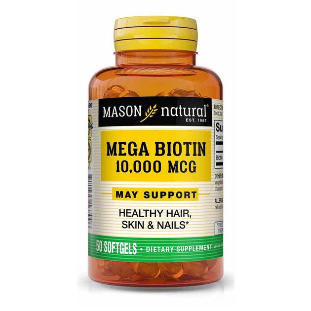 Вітаміни та мінерали Mega Biotin 10,000 mcg, 50 капсул Mason Natural 000315035