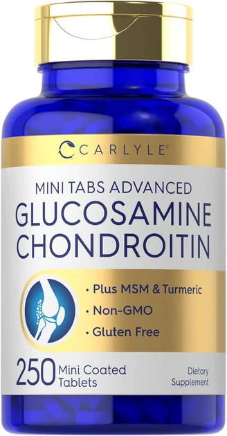 Добавка преміум-класу для суглобів та зв'язок Carlyle Glucosamine Chondroitin MSM Turmeric 250 таблеток