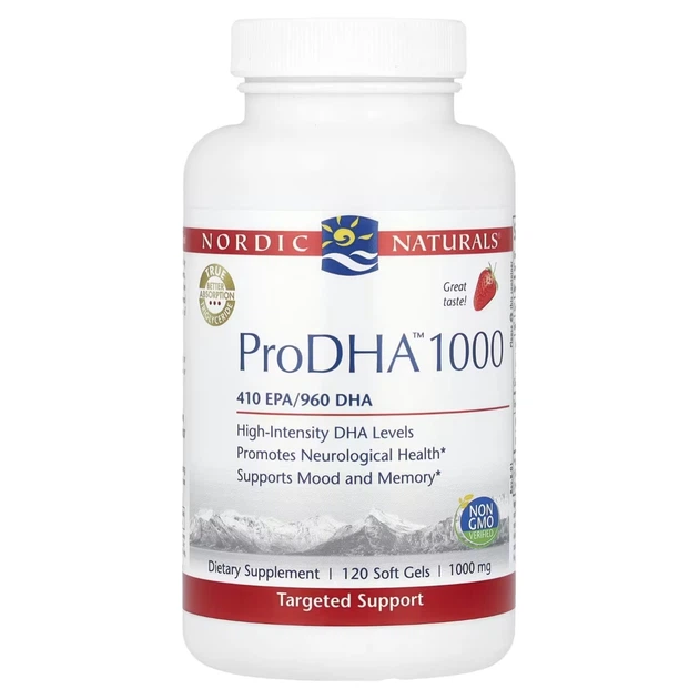 Жирні кислоти Nordic Naturals ДГК (докозагексаєнова кислота) високоефективна 1000 мг смак полуниці ProDHA 120 гелевих капсул