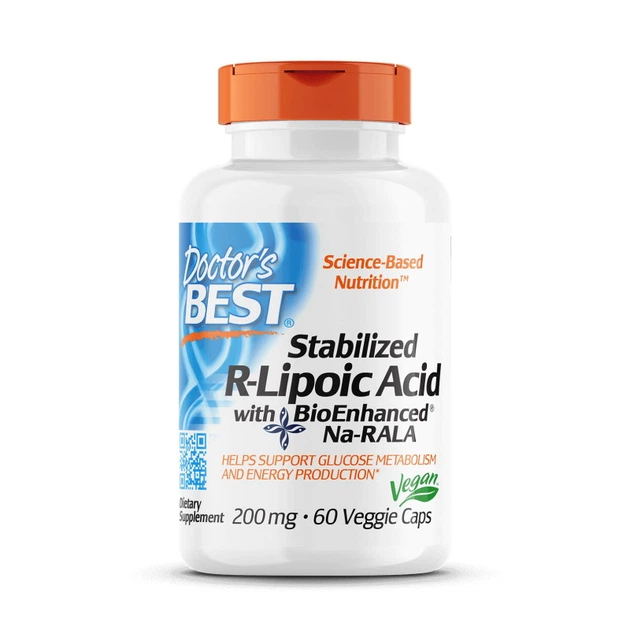 Натуральна добавка Doctor's Best Stabilized R-Lipoic Acid 200 mg, 60 вегакапсул