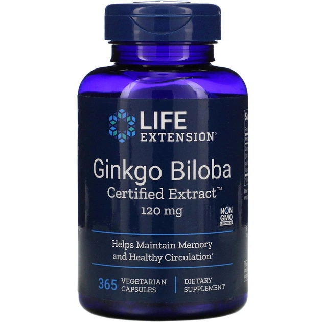 Гінкго білоба, Ginkgo Biloba, Life Extension, сертифікований екстракт, 120 мг, 365 капсул