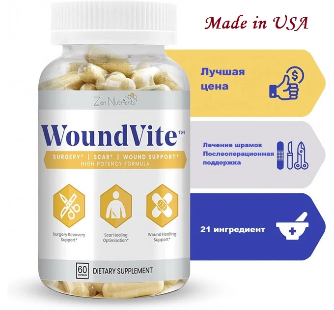 Вітаміни для загоєння ран та шрамів Zen Nutrients WoundVite (60 капсул) Made in USA