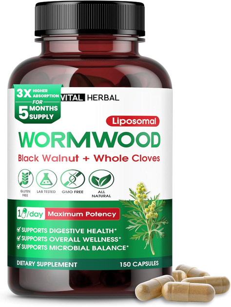 Добавка преміум-класу здоров'я травної системи Vital Herbal Wormwood with Black Walnut Whole Cloves