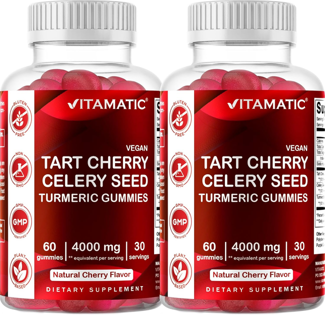 Добавка преміум-класу жувальні цукерки терпка вишня насіння селери Vitamatic Tart Cherry with Celery Seed Gummies 120 таблет