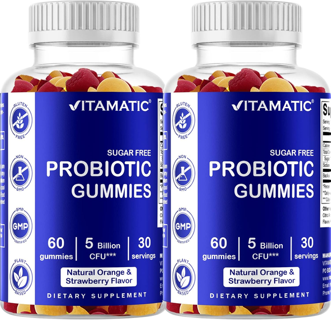 Добавка преміум-класу жувальні цукерки імунне та кишкове здоров'я Vitamatic Sugar Free Probiotic Gummies 120 таблеток