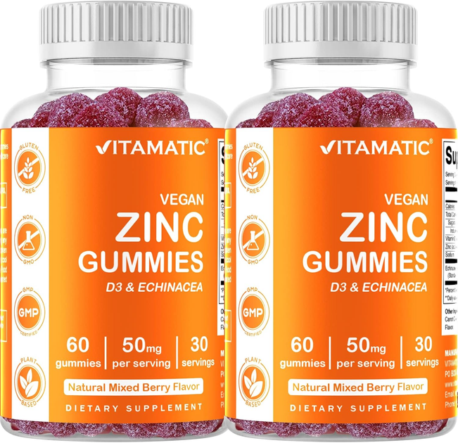 Добавка преміум-класу жувальні цукерки цинк Vitamatic Zinc 50mg Gummies 120 таблеток