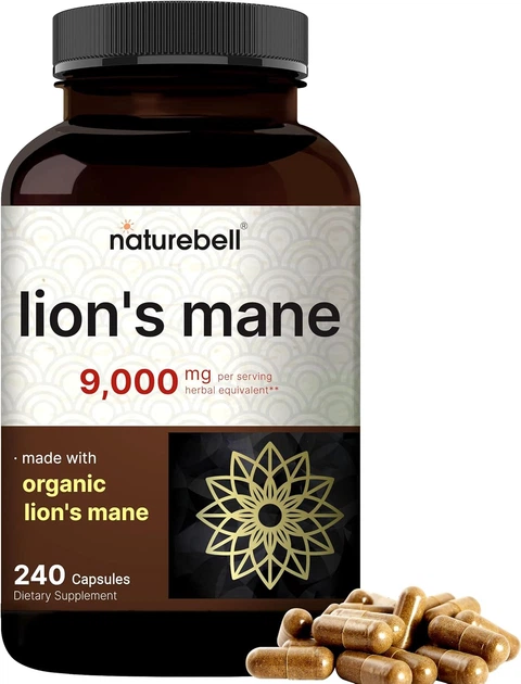Добавка преміум-класу для когнітивного мозку та підтримка імунітету NatureBell Lions Mane Mushroom 240 капсул