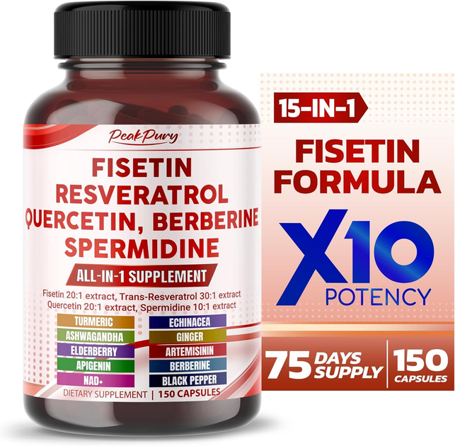 Підтримка здоров'я преміум-класу PeakPury Fisetin Resveratrol Quercetin Elderberry Echinacea Ashwagandha Turmeric Ginger 150