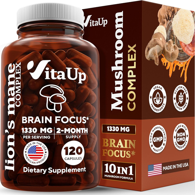 Комплекс грибів для мозкової активності преміум-класу VitaUp Lion's Mane Complex 120 капсул