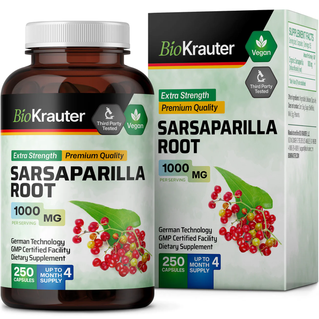 Добавка преміум-класу сарсапарилу для очищення та детоксикації Bio Krauter Sarsaparilla Root 250 капсул