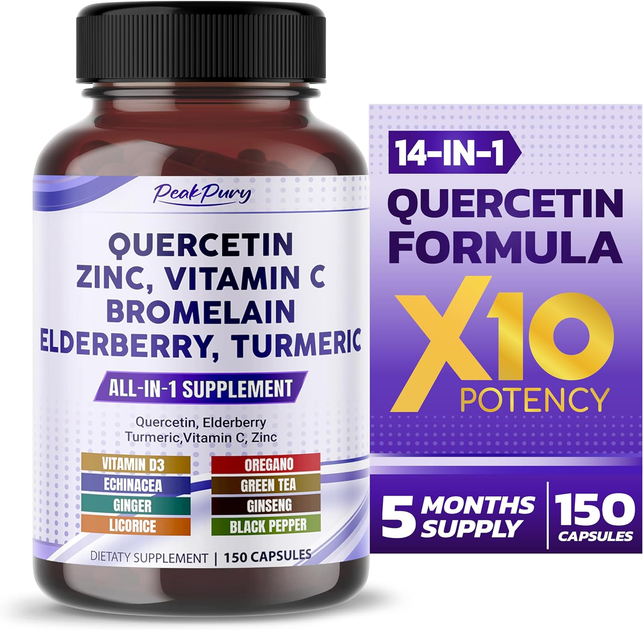 Підтримка імунітету преміум-класу PeakPury Quercetin Elderberry Turmeric Vitamin C Zinc 150 капсул