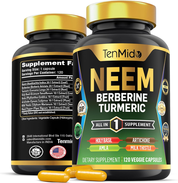 Добавка преміум-класу з листя німу для підтримки імунітету Tenmido Neem Leaf 120 капсул