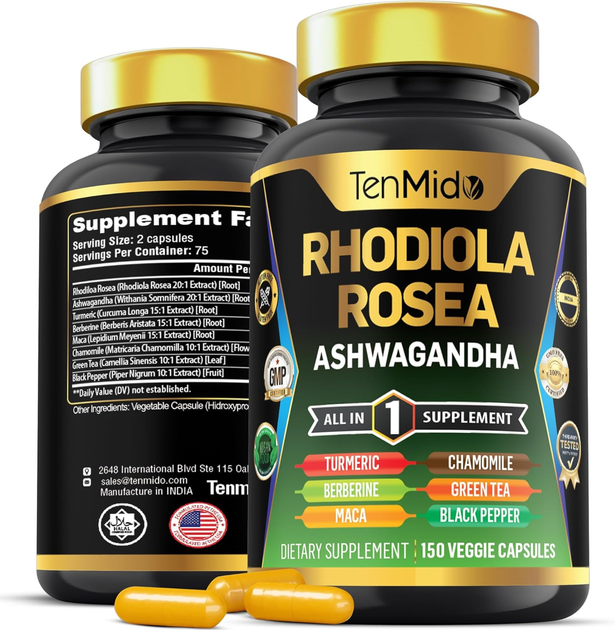 Добавка преміум-класу з родіоли рожевої Tenmido Rhodiola Rosea Ashwagandha 150 капсул