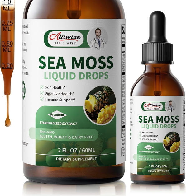 Добавка преміум-класу для імунної травної підтримки Alliwise Irish Sea Moss Liquid Drops 60 мл