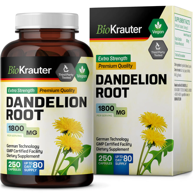 Добавка преміум-класу для печінки та нирок Bio Krauter Dandelion Root 250 капсул