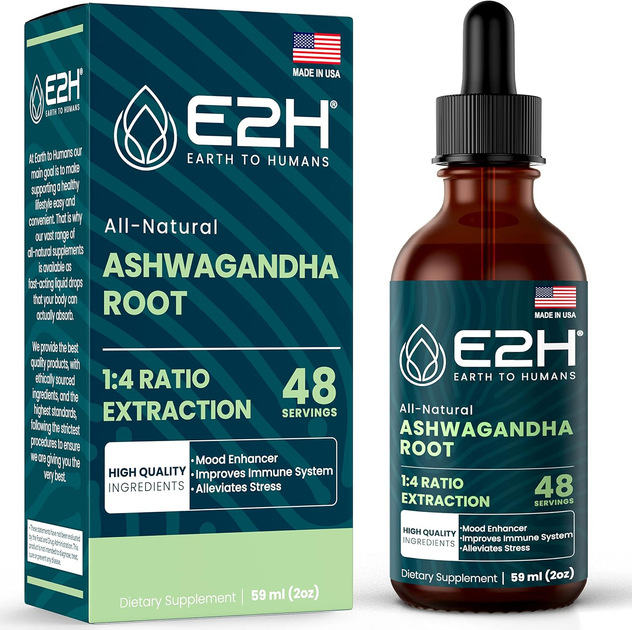 Додавання преміум-класу зняття стресу та посилення настрою E2H Earth To Humans Ashwagandha Liquid Drops 59 мл