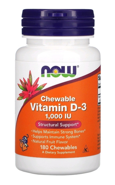 Вітаміни Now Foods вітамін Д 3 1000 МО жувальний натуральний фруктовий смак 180 жувальних таблеток