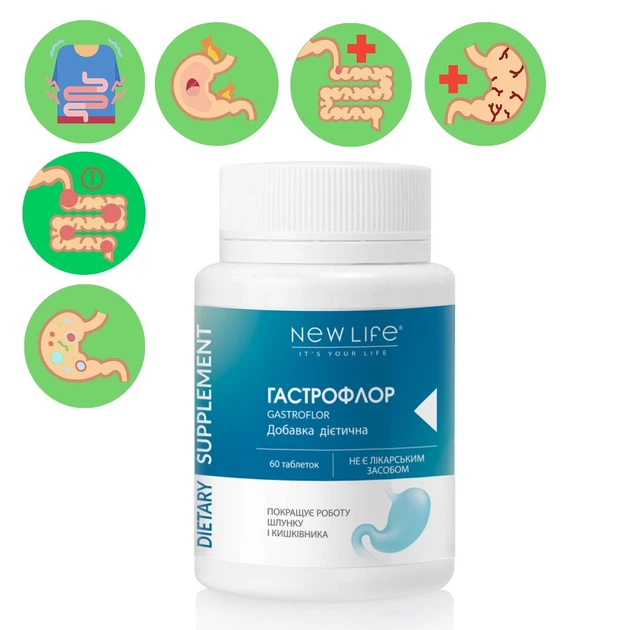 Гастрофлор / Gastroflor Добавка Дієтична Нове Життя (New Life) Для Шлунка І Кишківника 60 Таблеток