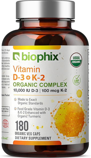 Добавка преміум-класу підтримує міцні кістки та імунне здоров'я Biophix Organic Vitamin D-3 K2 180 капсул