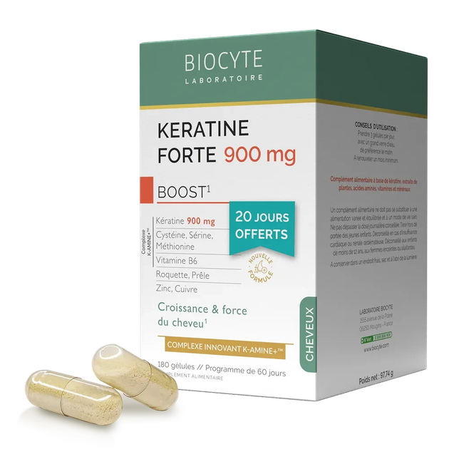 Комплекс зміцнює та допомагає відростити довге волосся Biocyte Keratine Forte 900MG Boost Pack K-Amine 180 капсул