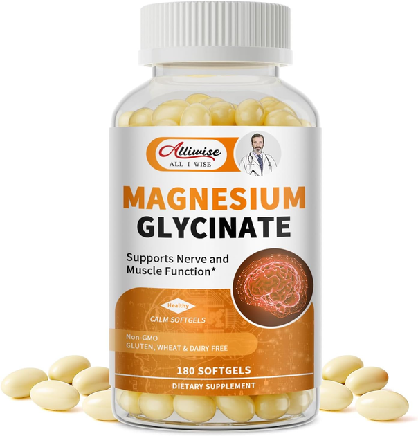 Добавка преміум-класу магній з високою біодоступністю Alliwise Magnesium Glycinate 180 капсул