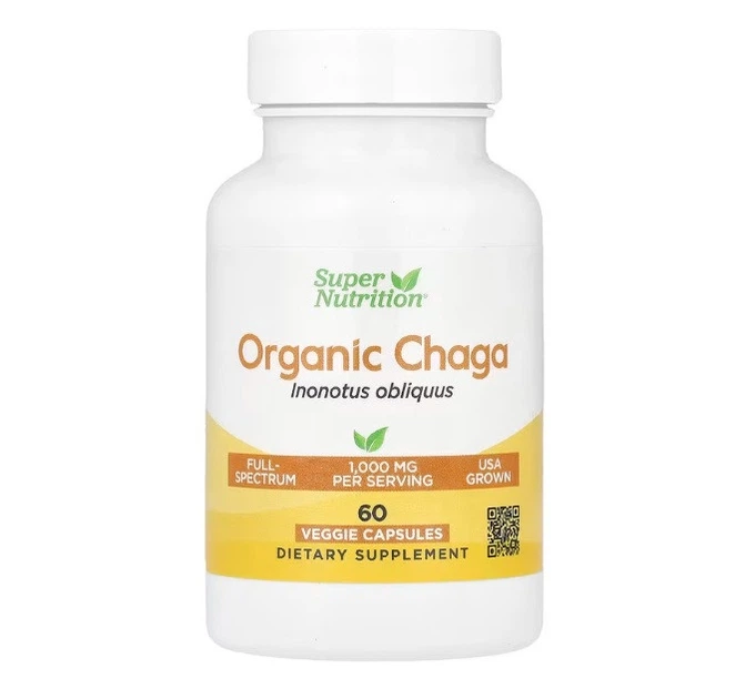 Гриб-чага Super Nutrition Organic Chaga Mushroom 500 мг 60 капсул