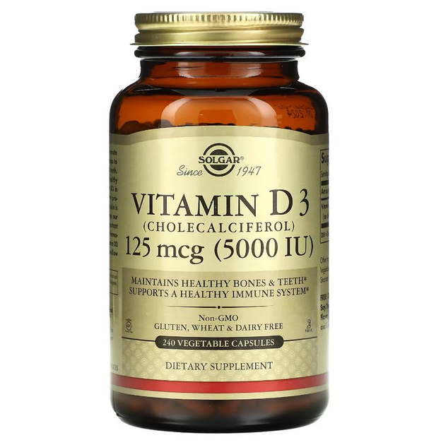 Вітаміни Solgar Vitamin D3 Cholecalciferol 125 мкг 5000 IU 240 капсул
