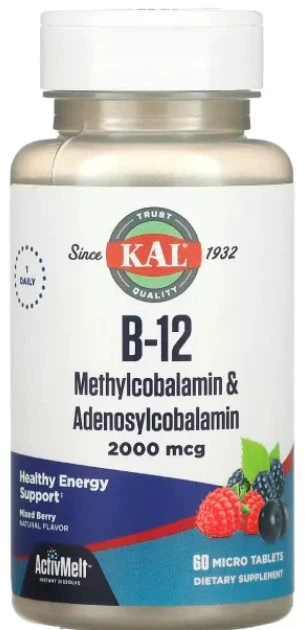 Вітамін В12 KAL B-12 Methylcobalamin and Adenosylcobalamin 2000mcg - 60 tabs