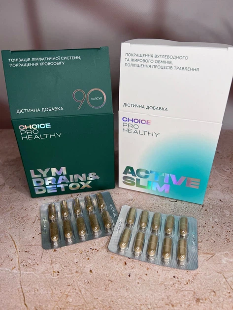 Лімфодренаж і детоксикація, швидке схуднення жироспалювання LYM DRAIN & DETOX 90 капсул + ACTIVE SLIM 60 капсул Choice
